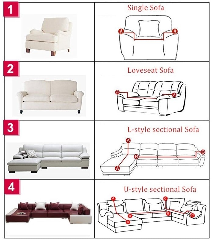 *Note: All sofa covers are flexible and can adapt to different length changes. Compare the chart and choose a sofa cover according to your sofa style.In order to better cover our beloved sofa,we recommend buying a larger size than the sofa size.