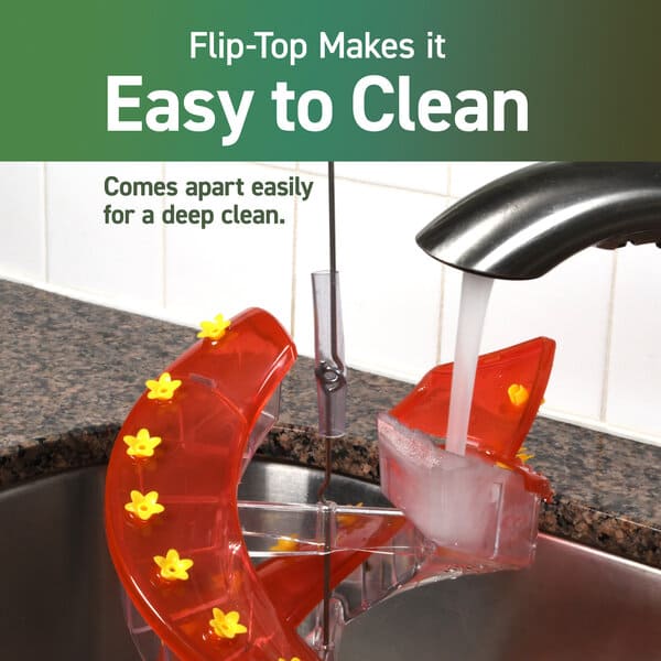 You can even fill the feeders when they are hanging. And watching nectar and seed cascade is educational as you and your kids fill your feeders. Cleaning is also a breeze through the innovative Flip-top.