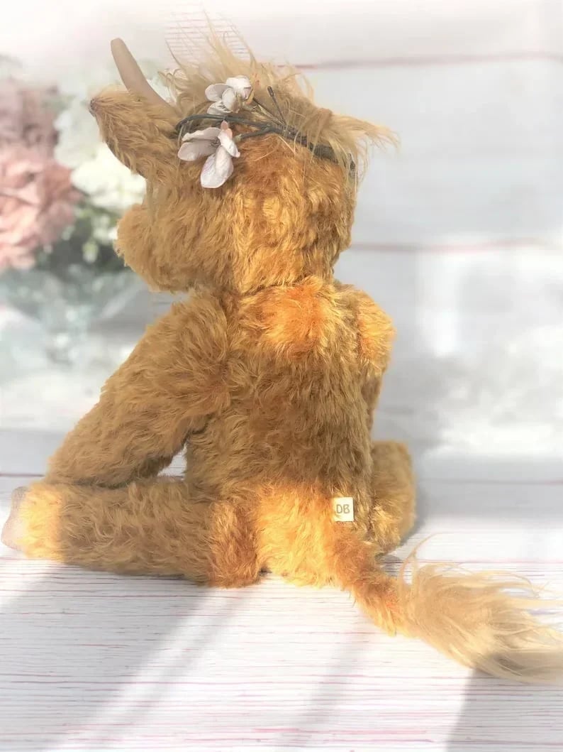 As well as having traditional cotter pin joints , I include wired ears. The horns are handmade from polymer clay.