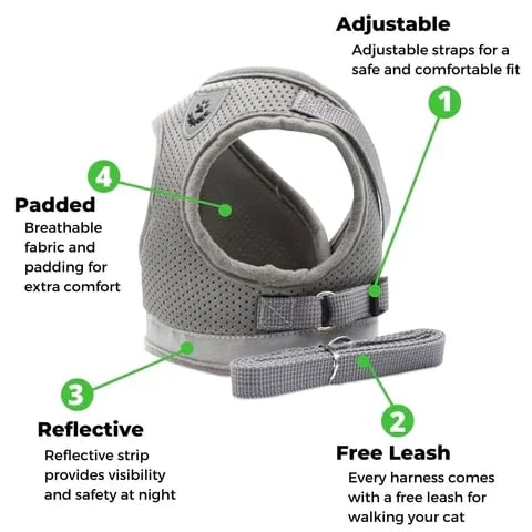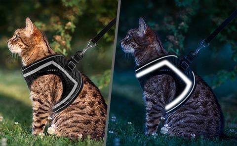 🐾SAFE AT NIGHT: The Harness features a reflective strip to ensure your cat is visible when walking at night. So you can feel confident knowing you and your cat are protected on your walks.