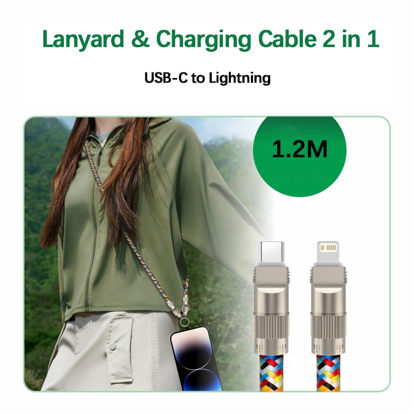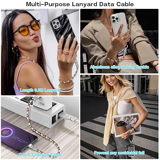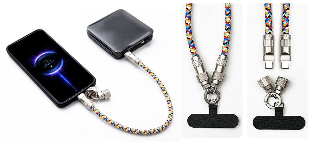 Adjustable Crossbody Bag And Neck Strap: This versatile phone lanyard charging cable can be adjusted to wear across the body or around the neck, ensuring comfort and easy access to your phone in any situation.