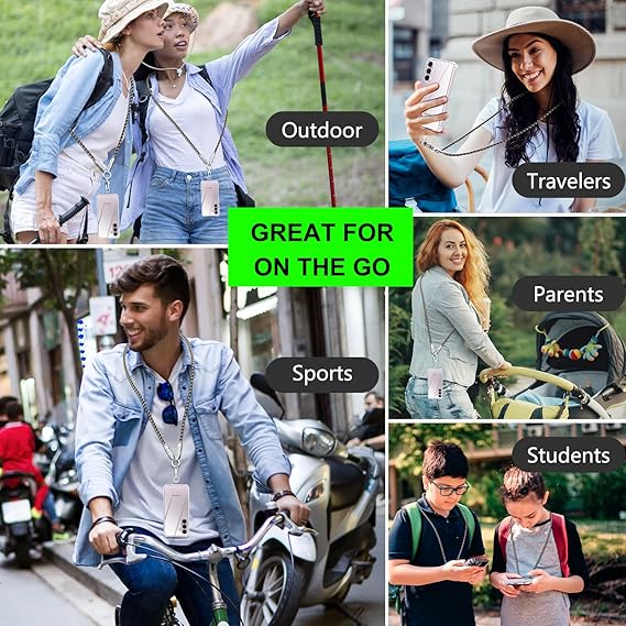 Cell phone lanyard can be hung around your neck or cross-body, making it more convenient to hold your phone without worrying about it dropping. It keeps your phone secure and accessible within your field of vision, whether you're shopping, walking the dog, cycling, or taking photos, Very convenient.😍