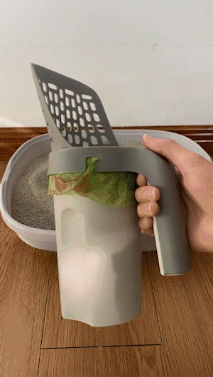 Our litter scoop is a clever combination of litter bag and holder. No more tedious steps, allowing you to clean your litter box quickly and easily with just one hand. When you're done, simply remove the scoop from the litter box, tie the bag in place, and throw it away.
