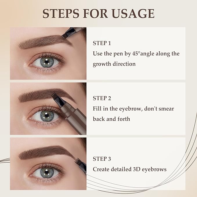 Our eyebrow pen feature a unique 4-prong micro-forked applicator for precise and easy application, making it easier to draw natural brows than regular brow pencil. Loved by beginners and professionals alike, this microblading eyebrow pen allows you to effortlessly follow the contours of your brows with precise color.