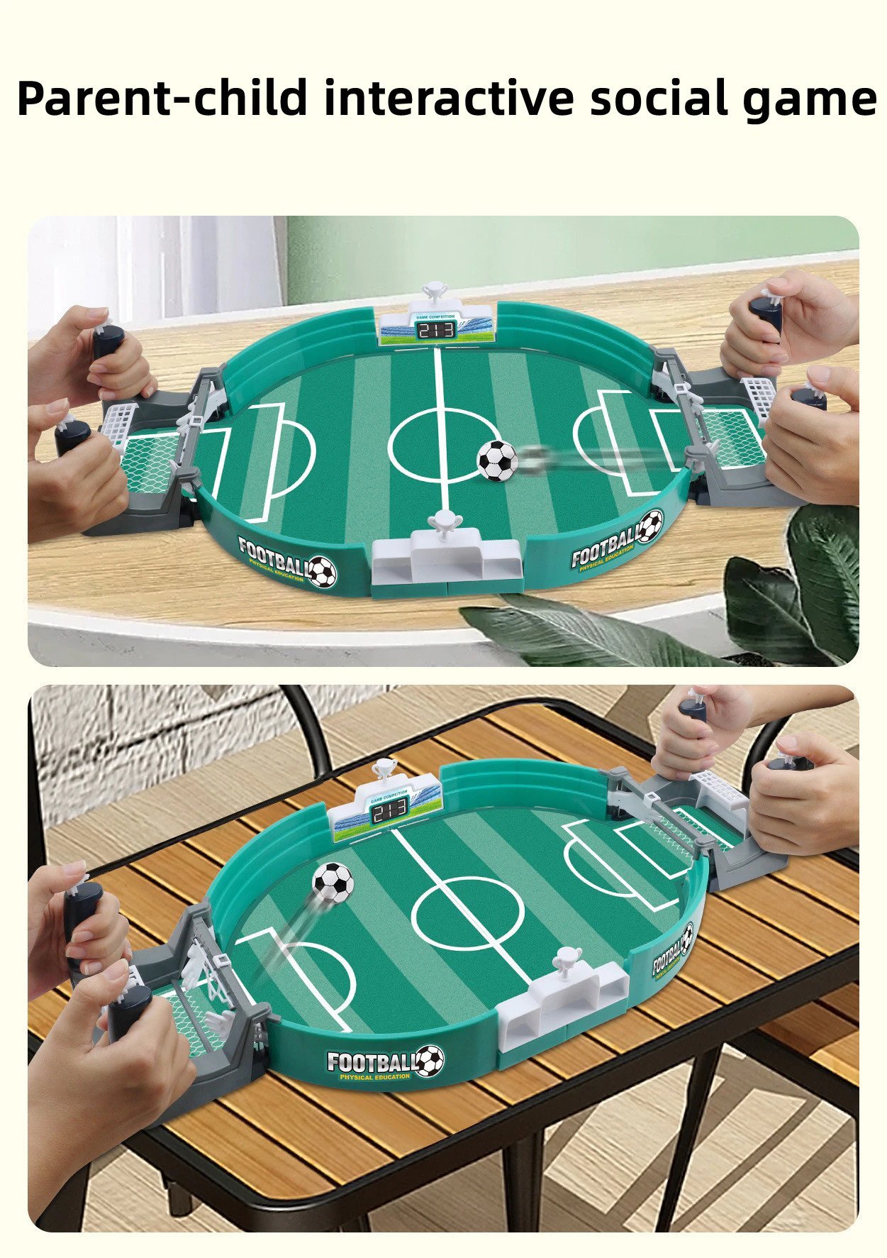 Football table interactive game is made of high-quality plastic material, environmental protection, BPA-free, safe, and non-toxic. And the smooth edge and surface will not hurt the babies' hands.