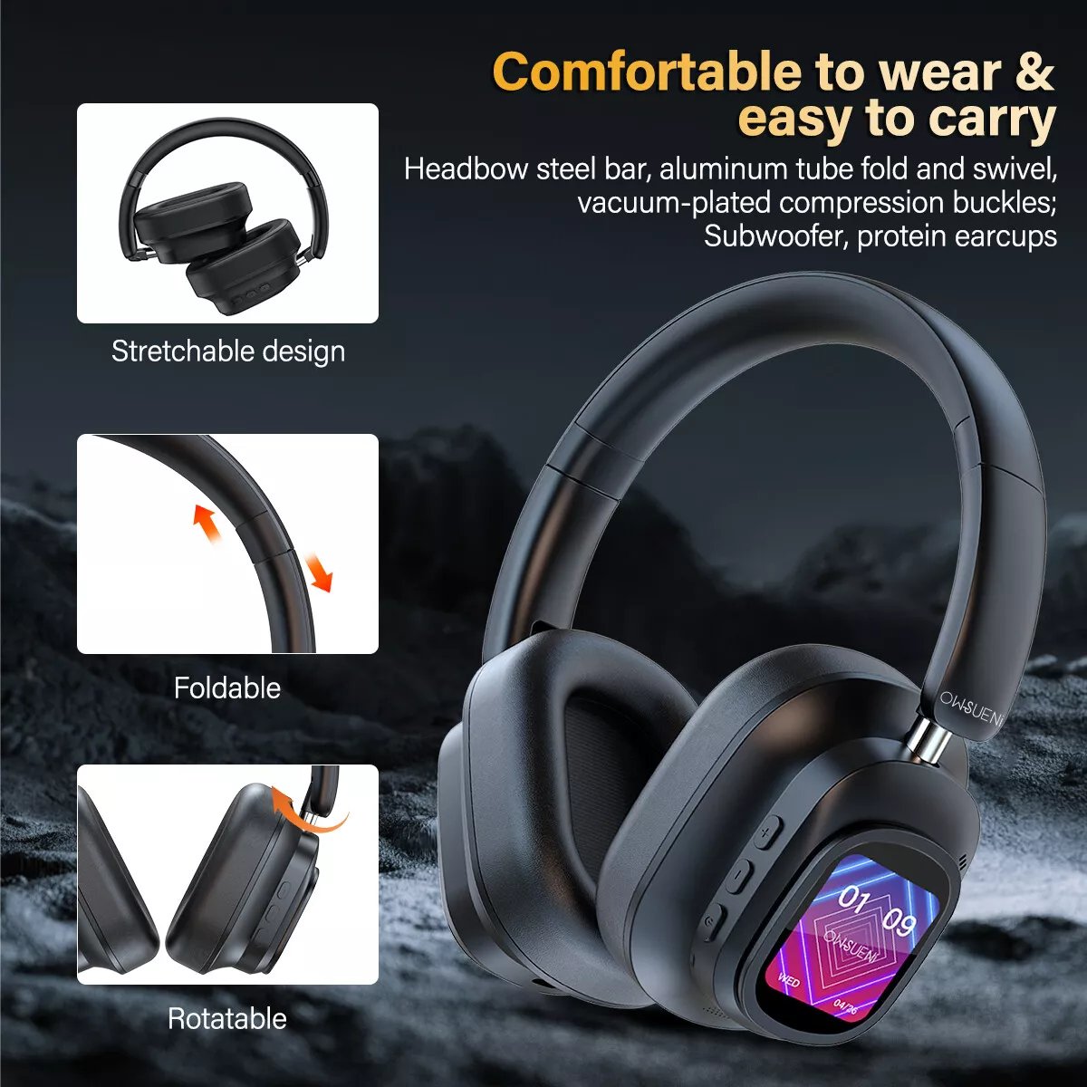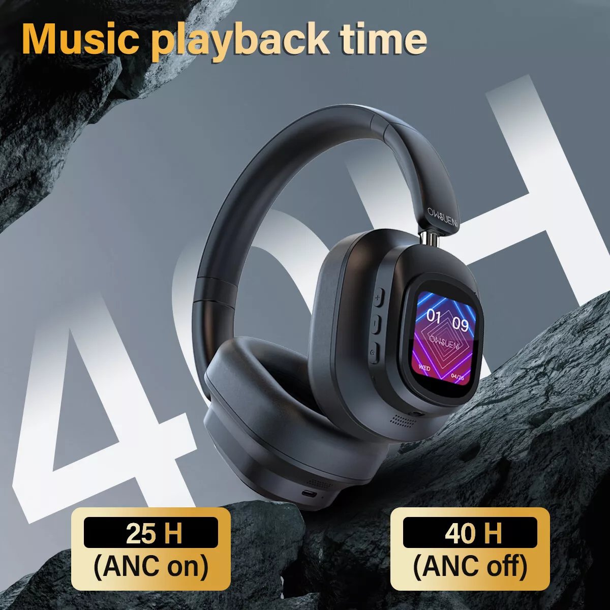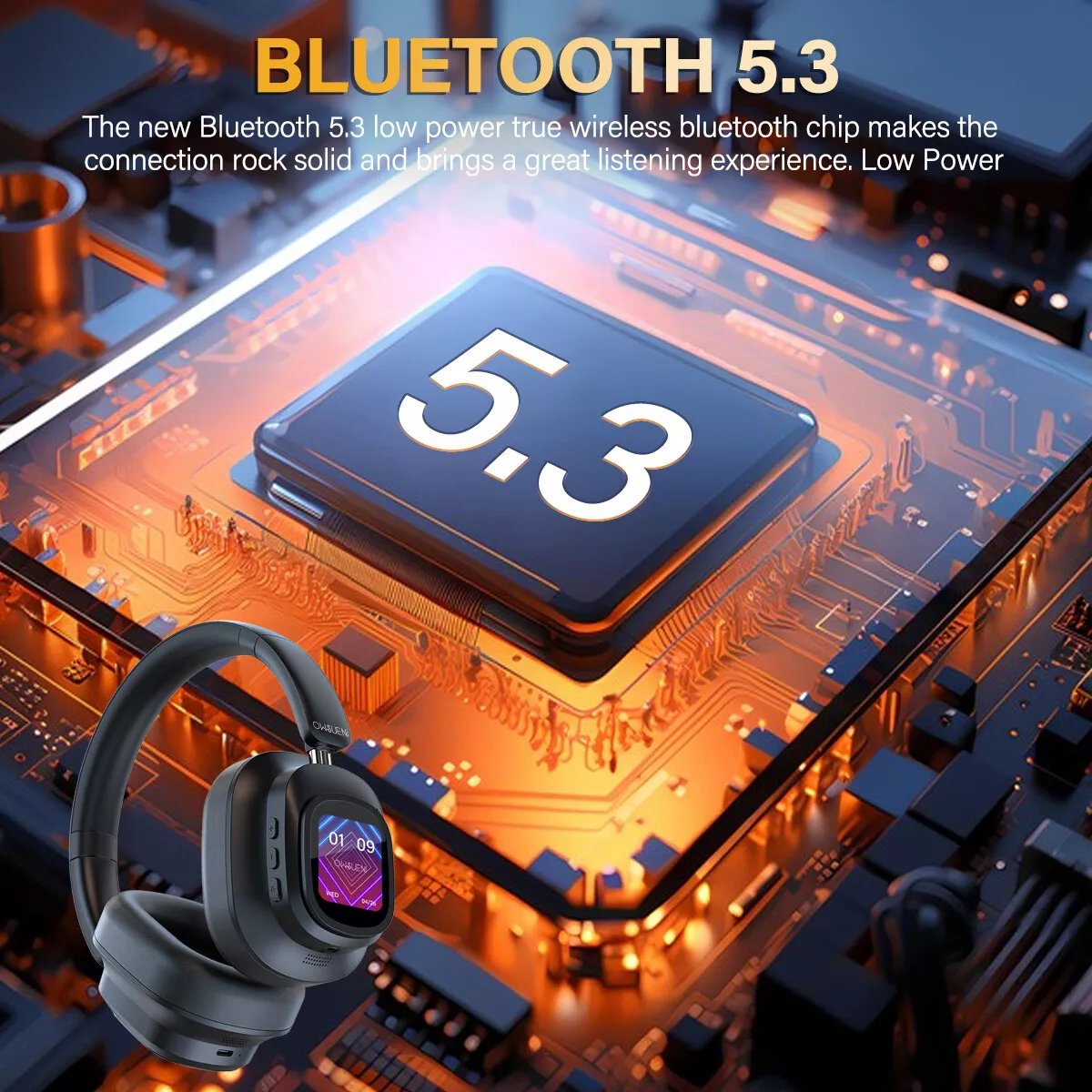 • Hybrid ANC Bluetooth 5.3 Headphones Over-Ear Wireless Headsets with LCD Screen