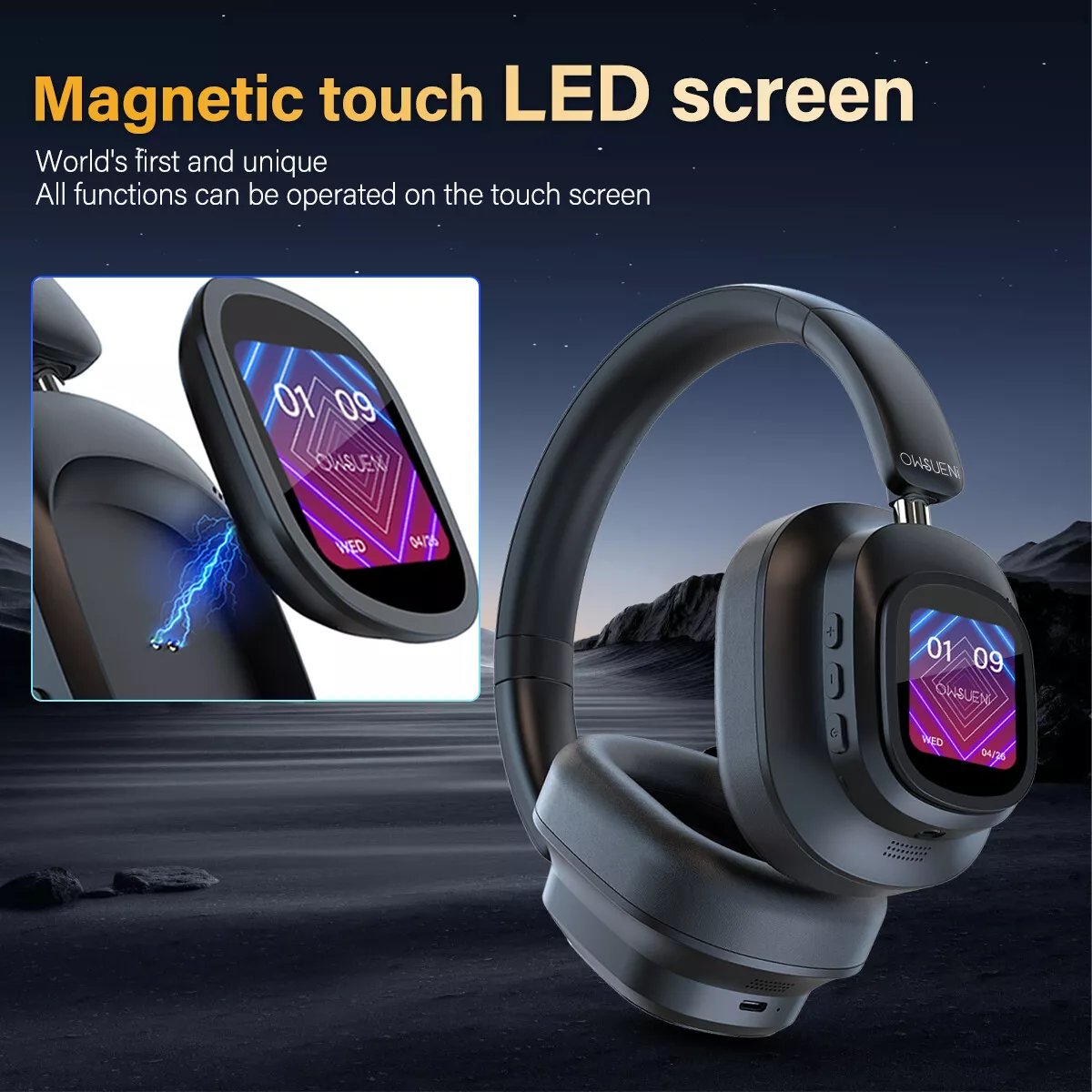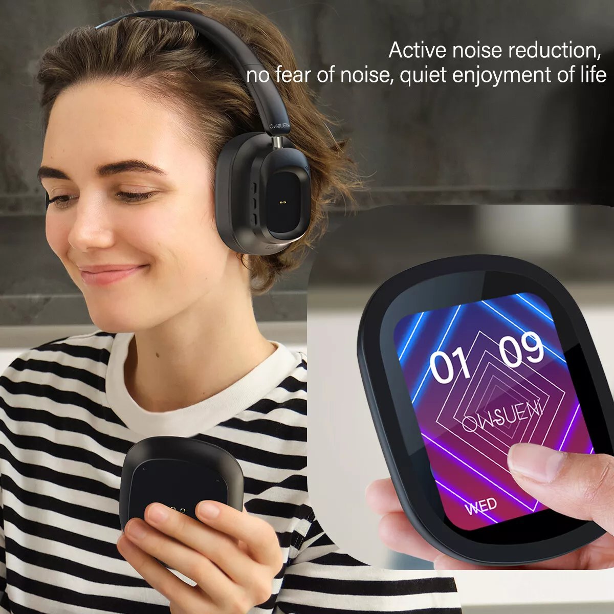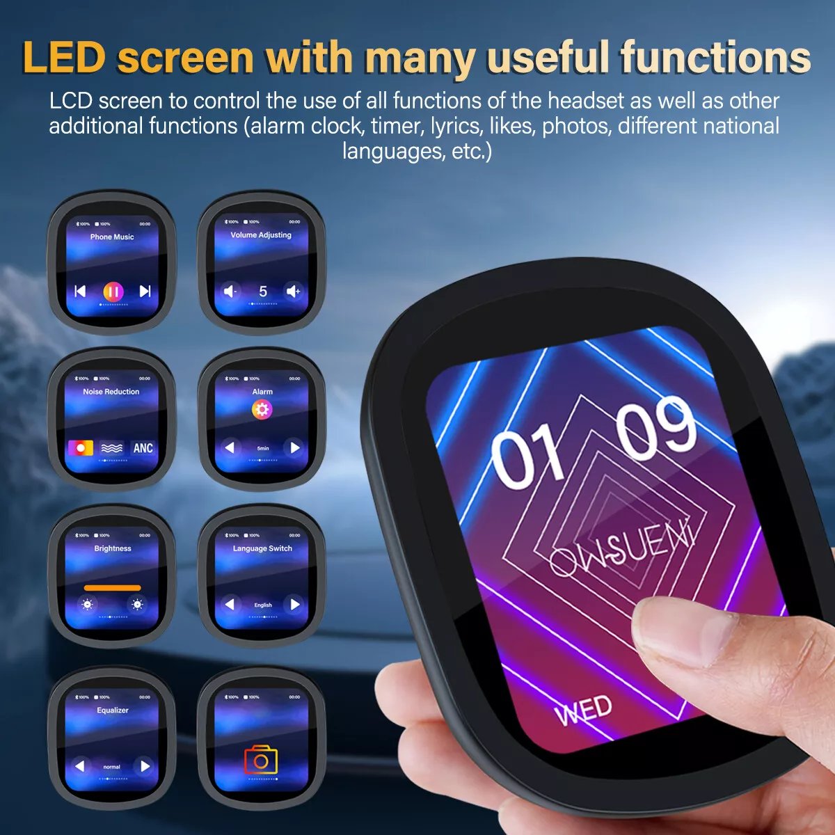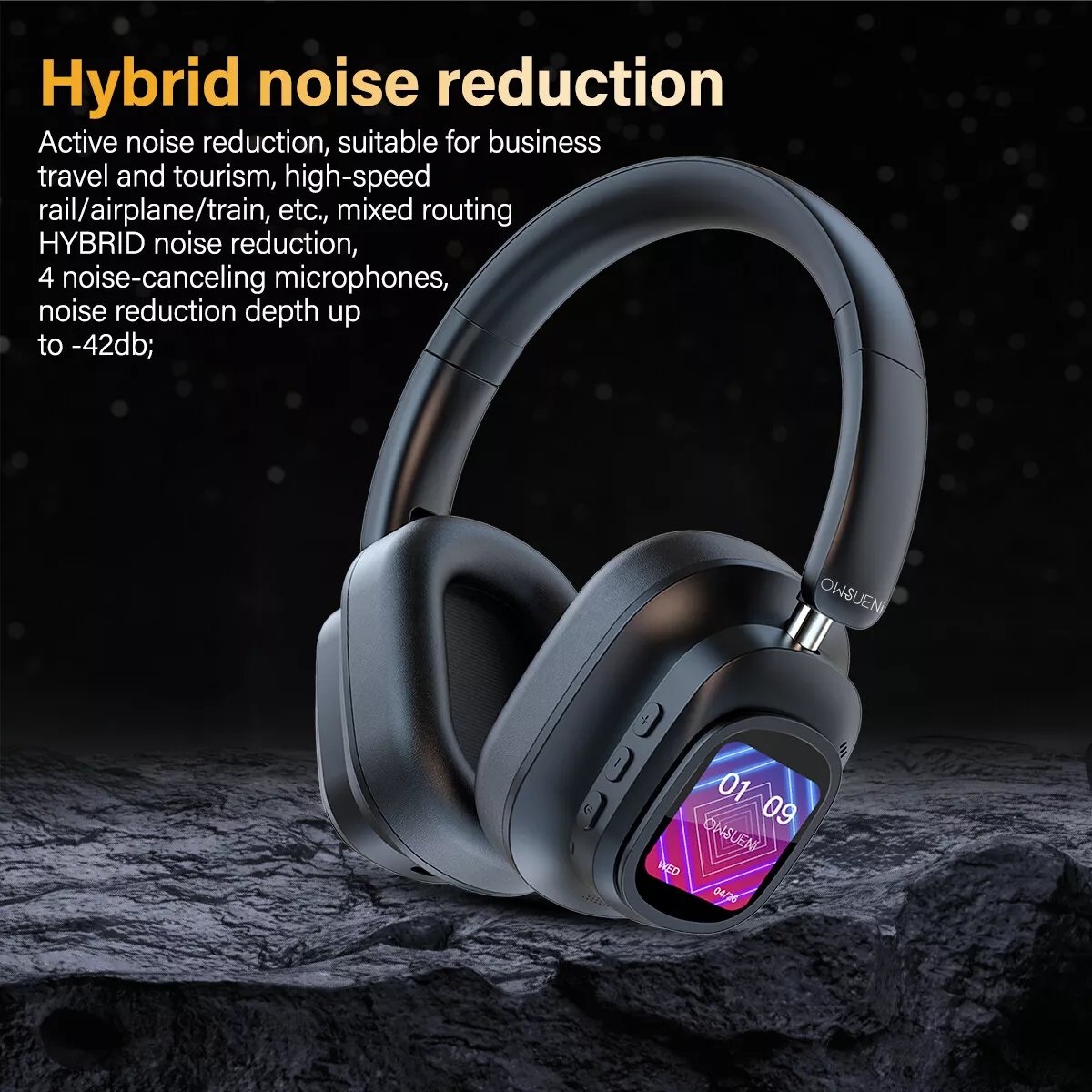• Hybrid ANC Bluetooth 5.3 Headphones Over-Ear Wireless Headsets with LCD Screen