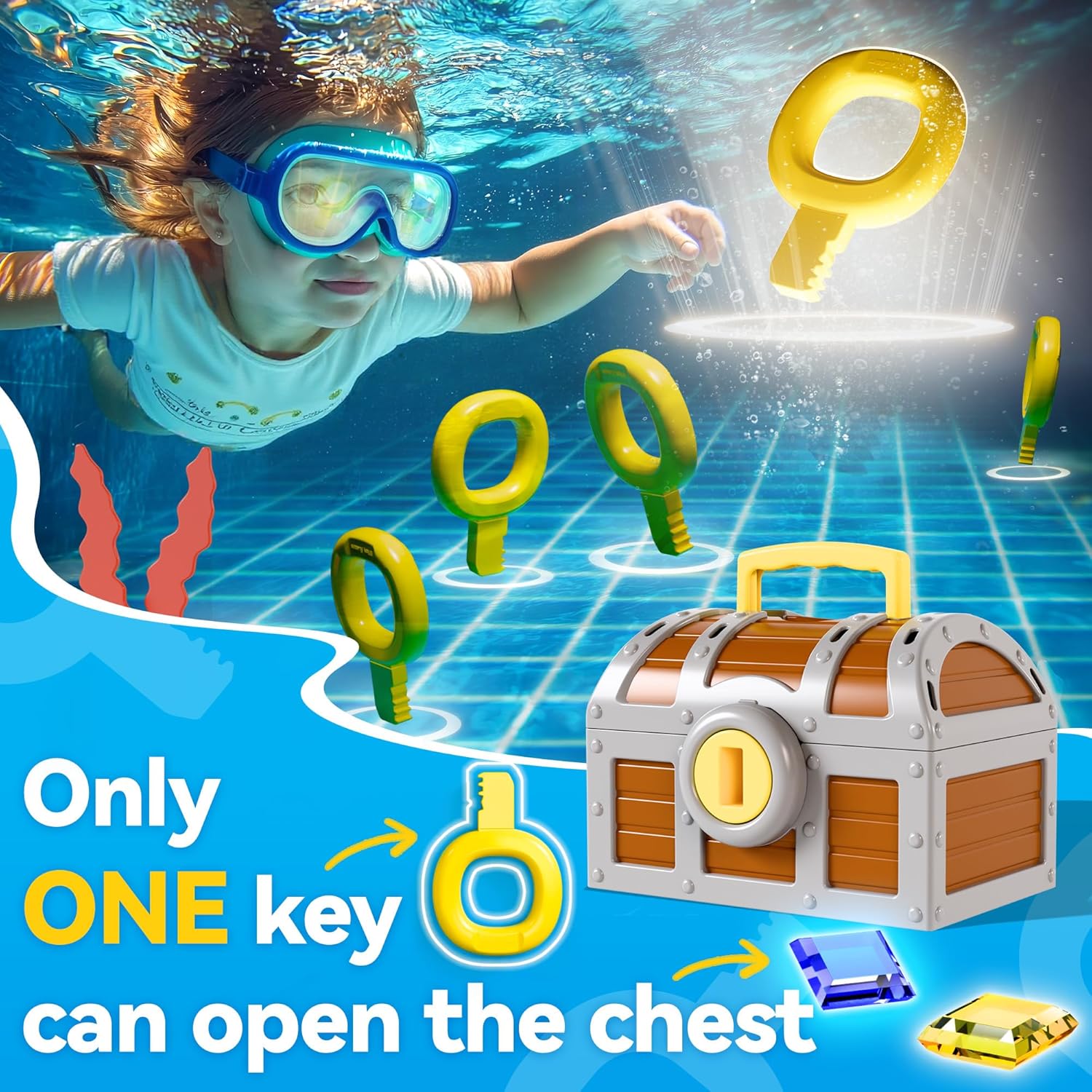 ✅ 7 Diving Keys – Bright yellow keys for kids to race and test—only one opens the treasure chest!