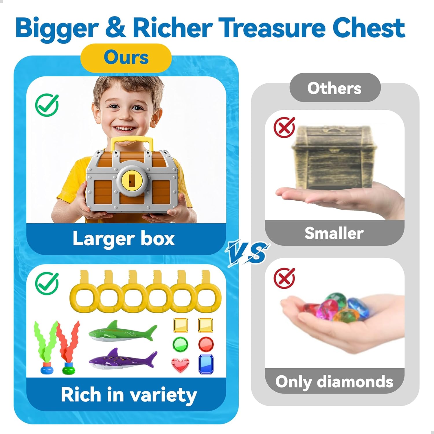 3.⭐⭐⭐⭐⭐Exciting pool adventure,kids' diving treasure chest playset!