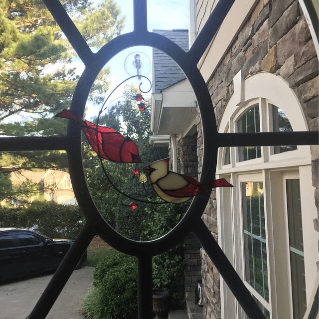 • Pair of Cardinal bird stained ornament