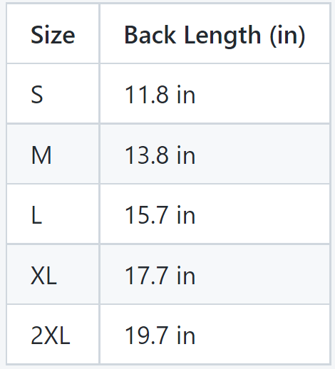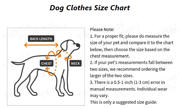 Dog Clothes Size Chart:S: back length 30cm / M: back length 35cm / L: back length 40cm / XL: back length 45cm / XXL: back length 50cm