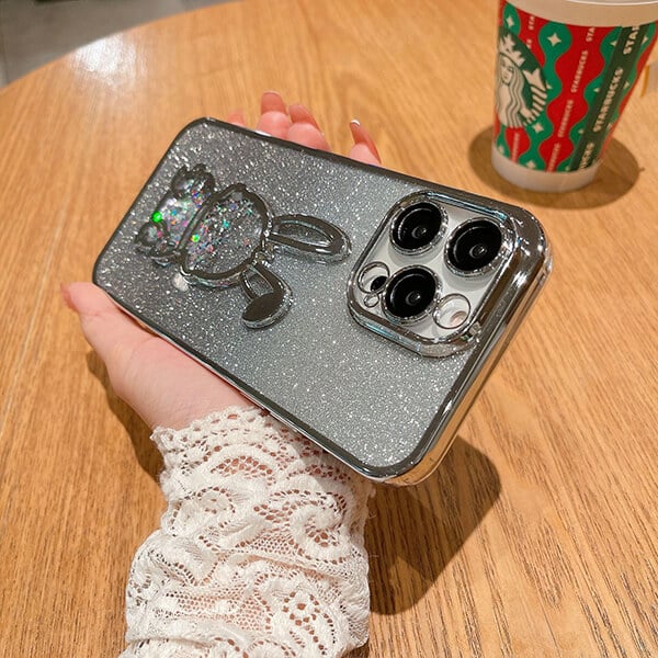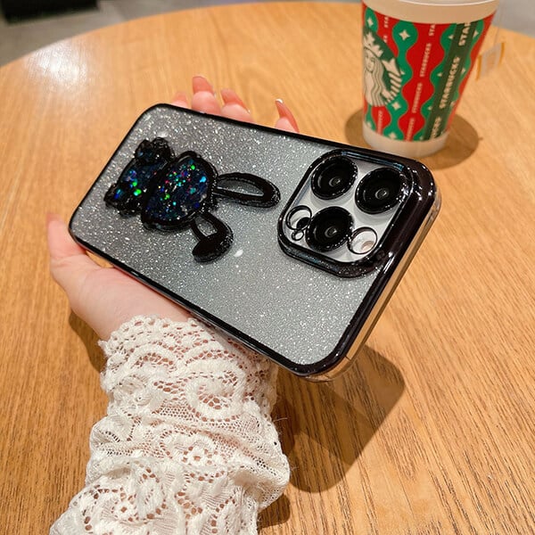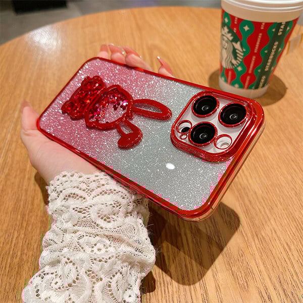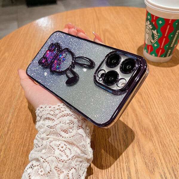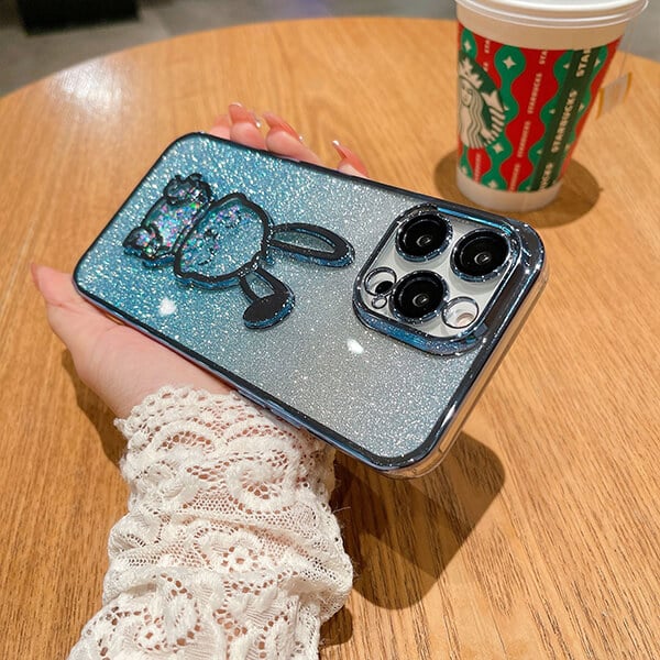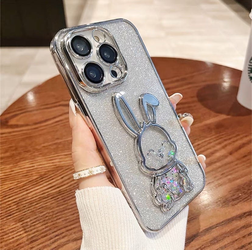 【Perfect Fit】:The bunny on the back of the phone case, with a moving quicksand glitter, makes your phone look beautiful and luxurious. The glitter moves freely with the movement of the back cover of the phone. It's beautiful and fun to play.