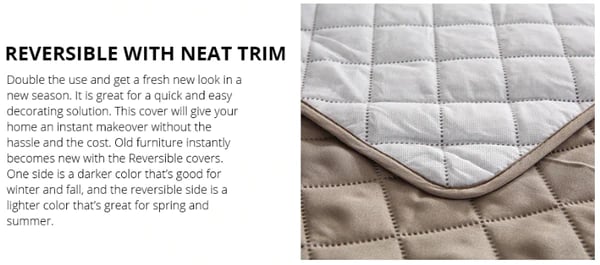 This sofa cover features two different solid colors, giving you two fresh looks to choose from. It's beautiful quilted texture, lofty polyfill and soft suede-like finish provides designer style and ultimate comfort. You will no longer worry about all of the mess that can happen to your sofa because now it has a protector.