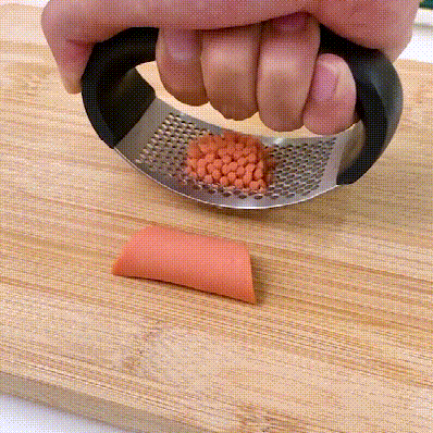 This new garlic press with comfortable handle design, can still achieve maximum output with minimal pressure on fingers, hands and wrists. Even people with weak grip or small hands can chop garlic easily.