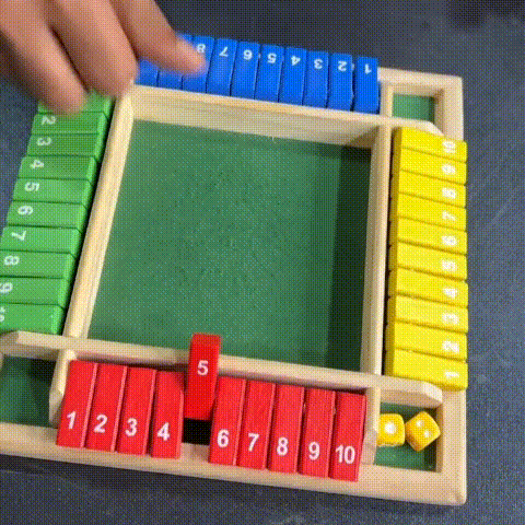Shut the box made of solid pinewood. The design of felt surface reduces noise when the board game is going on. Durable, scratch-resistant and environmentally friendly.Four different colors of acrylic silk-screen technology dice to ensure long-term use.