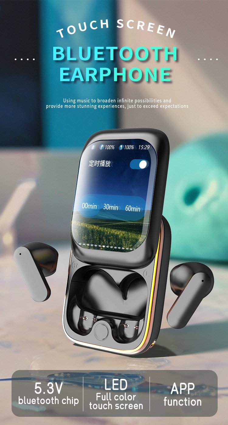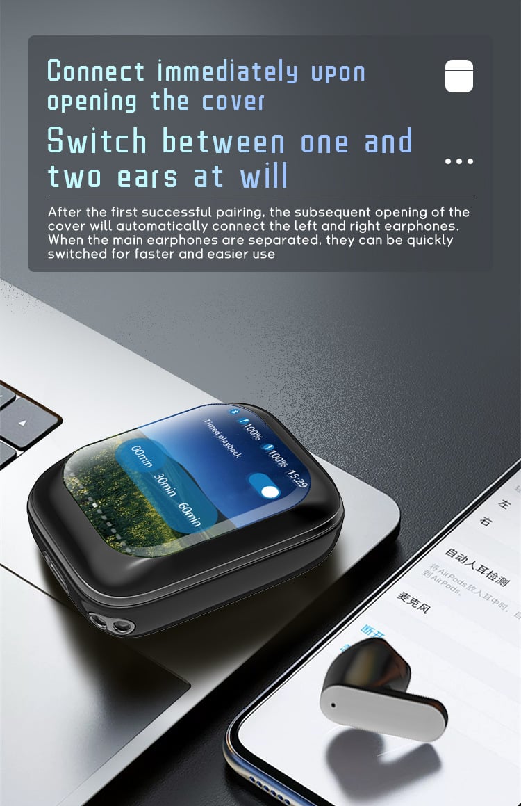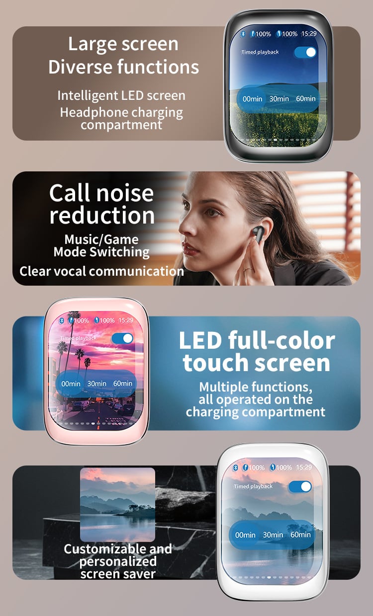 ANC noise cancellation technology allows you to enjoy your favorite audio, even silent sounds, allowing you to immerse yourself in superior spatial audio anytime, anywhere. Touch color screen control, multi-function operation, unique smart charging case gives you direct access to all the key functions of the earbuds without a smartphone app. You don't need to use your phone to control the headset app functions, just touch the charging case screen for a truly seamless experience. The innovative Bluetooth smart charging case lets you immerse yourself in up to 48 hours of spatial audio on a single charge. Microphone technology ensures call quality under any conditions.