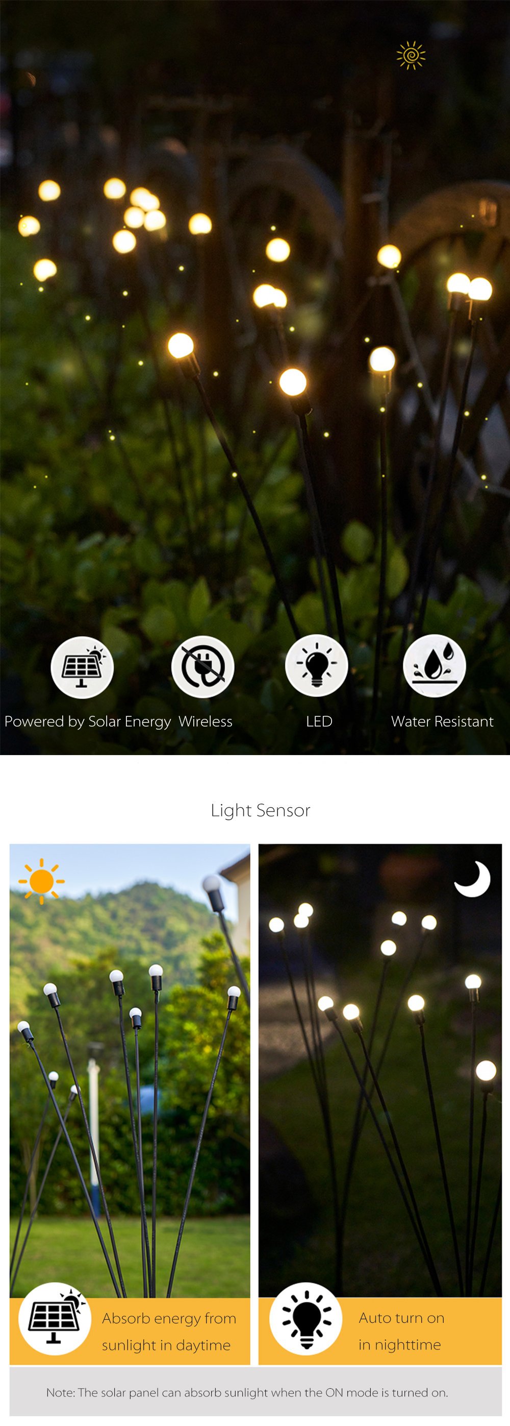 Swing When The Wind Blows: The most unique solar decorative lights on the market, our solar powered firefly light are supported by very soft and flexible wires, so when the wind blows, the lights will swing and you'll be happy to see how beautiful they are super unique solar light that you can't see anywhere else.